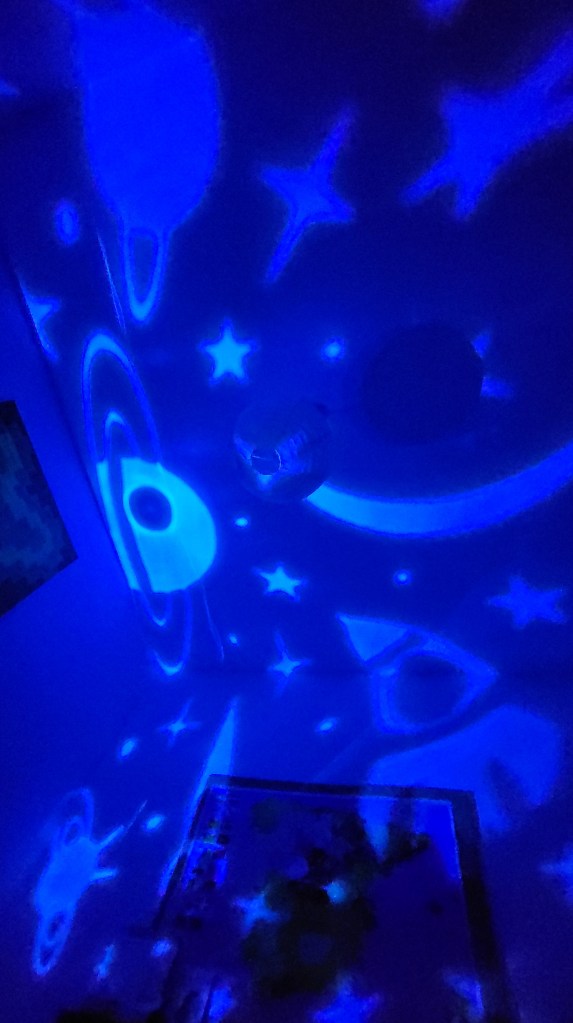 ¿Cómo suavizar las pesadillas, el miedo a la oscuridad total, o los acúfenos supuestamente ocasionados por el stress? Pues vamos a probar con un simpático proyector, que hace un pequeño zumbido por el motor que lo mueve.
